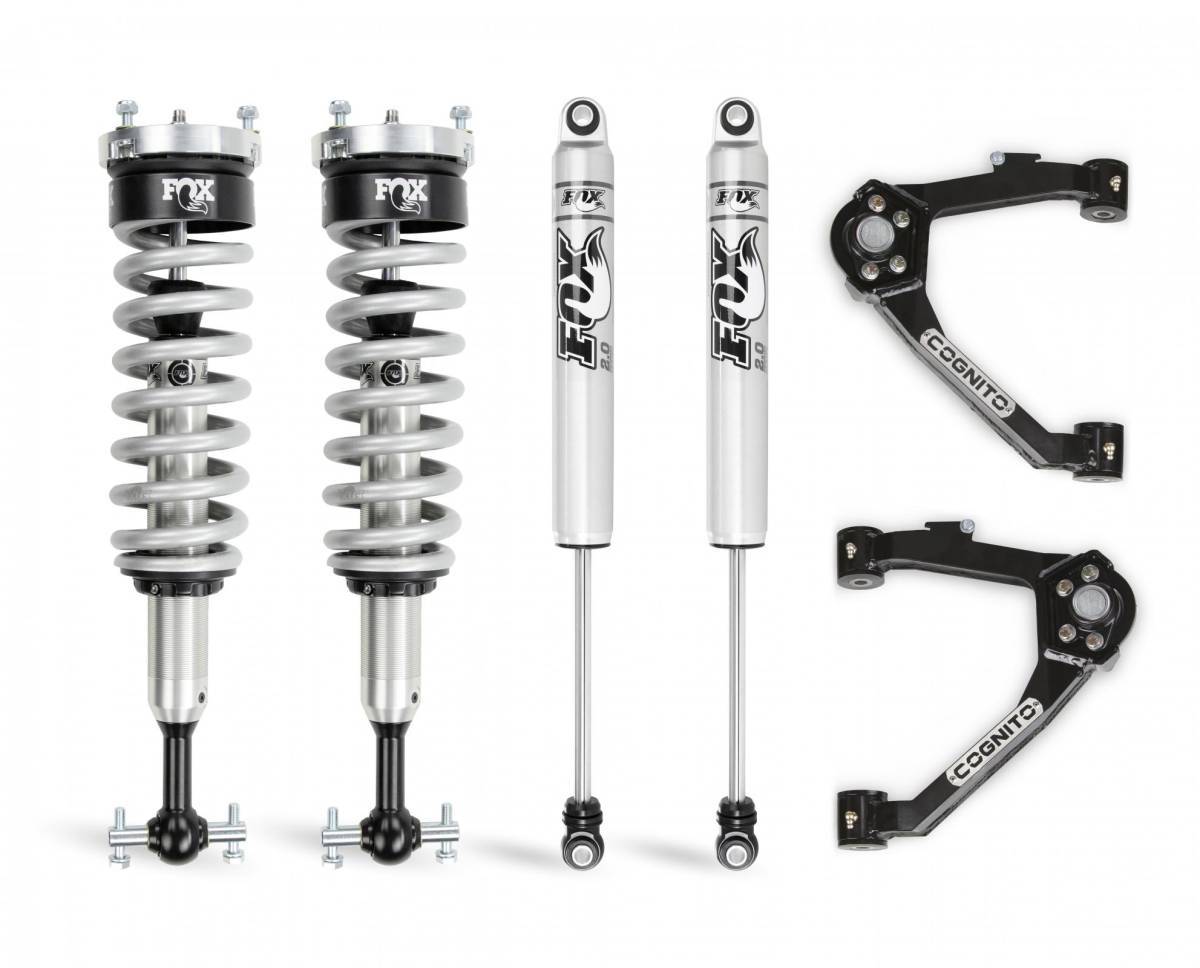 We have bundled everything you need in a leveling kit for your Silverado/Sierra 1500 2WD/4WD with high quality Cognito components. There is no guesswork. Cognito components are engineered, manufactured, and assembled in the USA. The Cognito 3-inch Performance Ball Joint Leveling Kit includes the Cognito Ball Joint SM Series Upper Control Arm Kit, Fox Performance Series Coilover front shocks and Fox Performance Series Monotube rear shocks‚Дц?С?Ё all with hardware included.