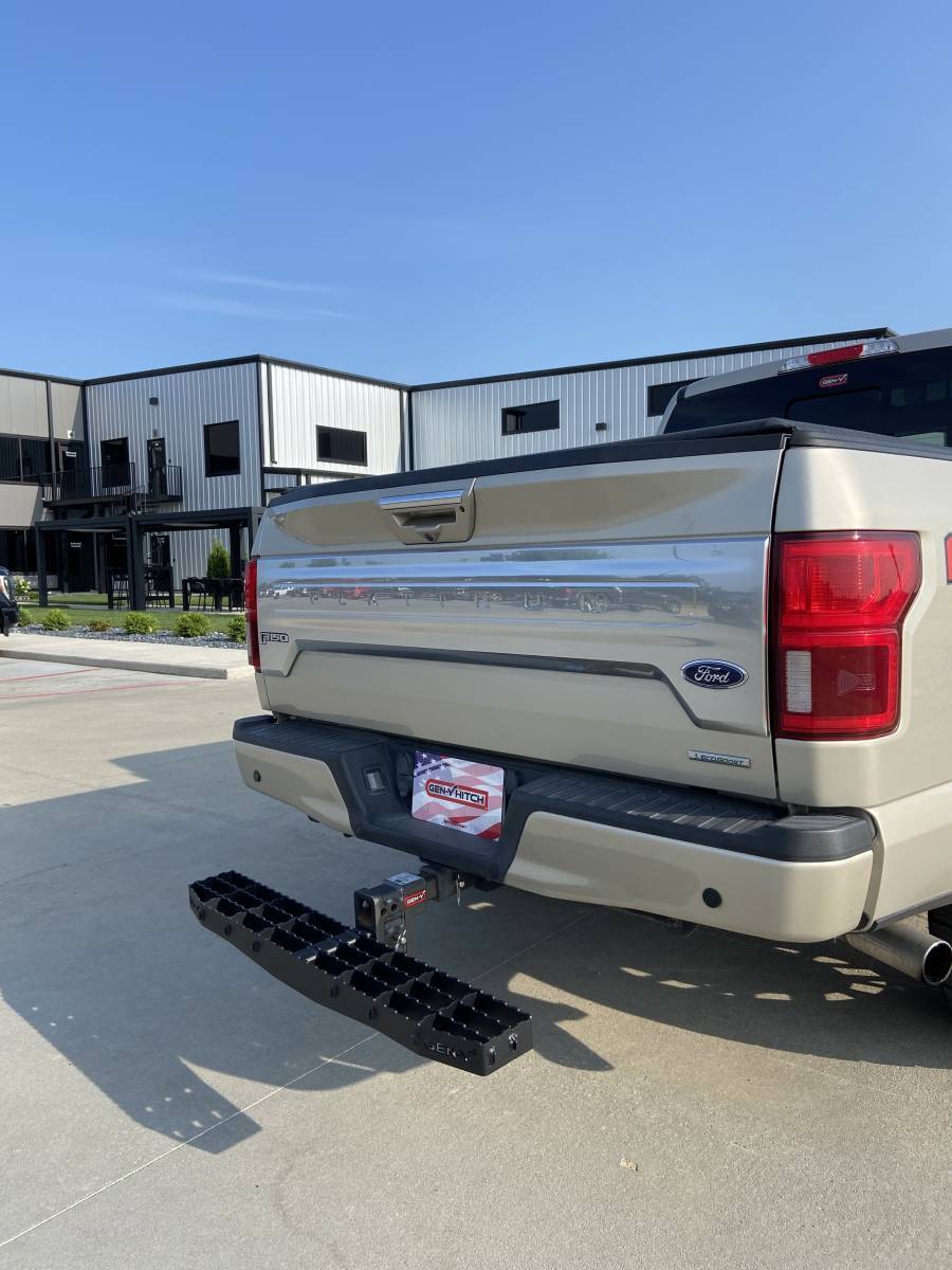 The PHANTOM Heavy-Duty Serrated XL Hitch Step is made 100% in the USA and is designed for zero-slip. Our hitch step is engineered and designed specifically to be used, not only as a convenient step but also as a boot scraper! Scrape off dirt, rocks, and mud from your shoes before getting in your vehicle. We at GEN-Y stand by our products and offer a lifetime guarantee on this hitch step. Furthermore, this product is 42" wide and compatible with GEN-Y hitches, making it versatile as well as functional. Total weight capacity for this hitch step is 600 lbs.
