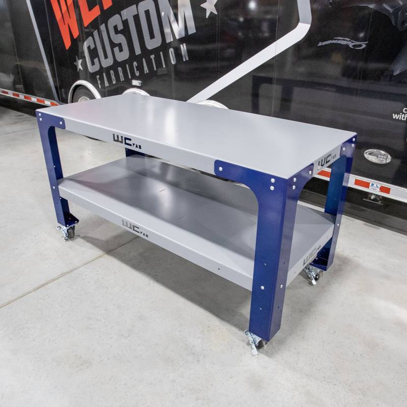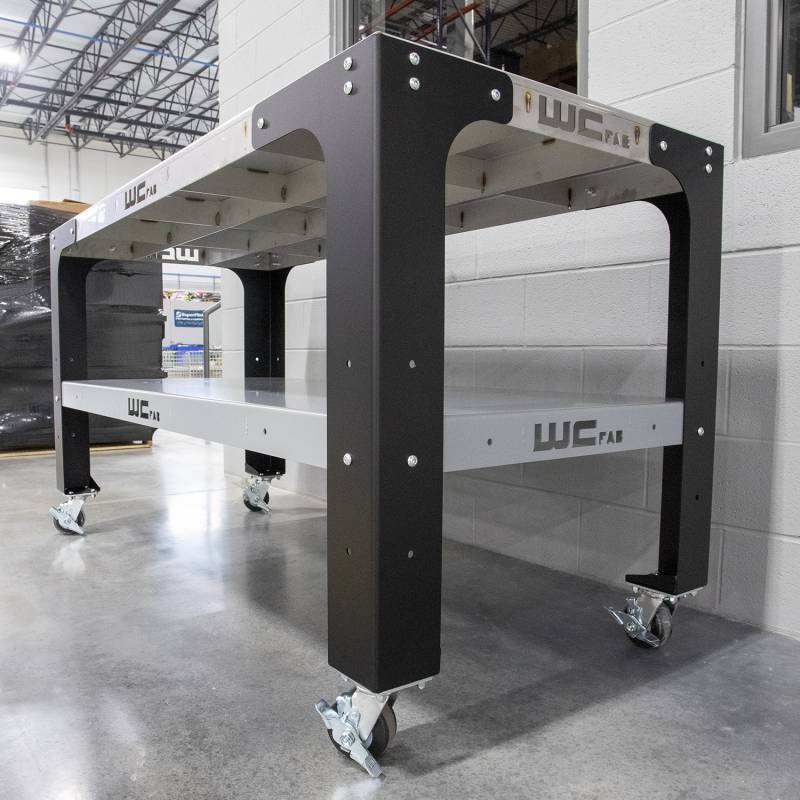 How tough are they? Rated for 3,000 lb max capacity (evenly distributed) using optional leveling feet or 1,500 lbs (evenly distributed) when fitted with the full swivel or combination swivel and solid caster options, these tables are built to work and look good doing it. So much so in fact, that we use them in every department in our shop - from machining to fabrication, powder coating prep to automotive performance and repair, and right down to final assembly and shipping.