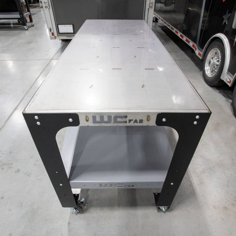 How tough are they? Rated for 3,000 lb max capacity (evenly distributed) using optional leveling feet or 1,500 lbs (evenly distributed) when fitted with the full swivel or combination swivel and solid caster options, these tables are built to work and look good doing it. So much so in fact, that we use them in every department in our shop - from machining to fabrication, powder coating prep to automotive performance and repair, and right down to final assembly and shipping.