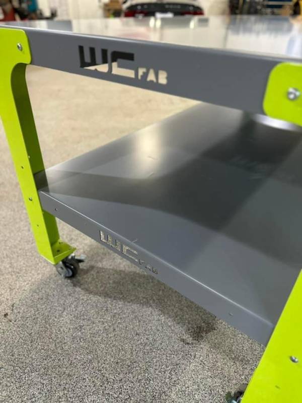 These heavy duty steel modular work benches from WCFab are CAD Designed, Precision Laser Cut, and CNC Bent from 11 gauge steel. Interchangeable top and shelf are fully gusseted with interlocking ribbed construction and MIG Welded (TIG Welding on Stainless Steel Tops) to provide an excellent balance of strength and durability with overall weight when used as a rolling work station utilizing the optional casters.