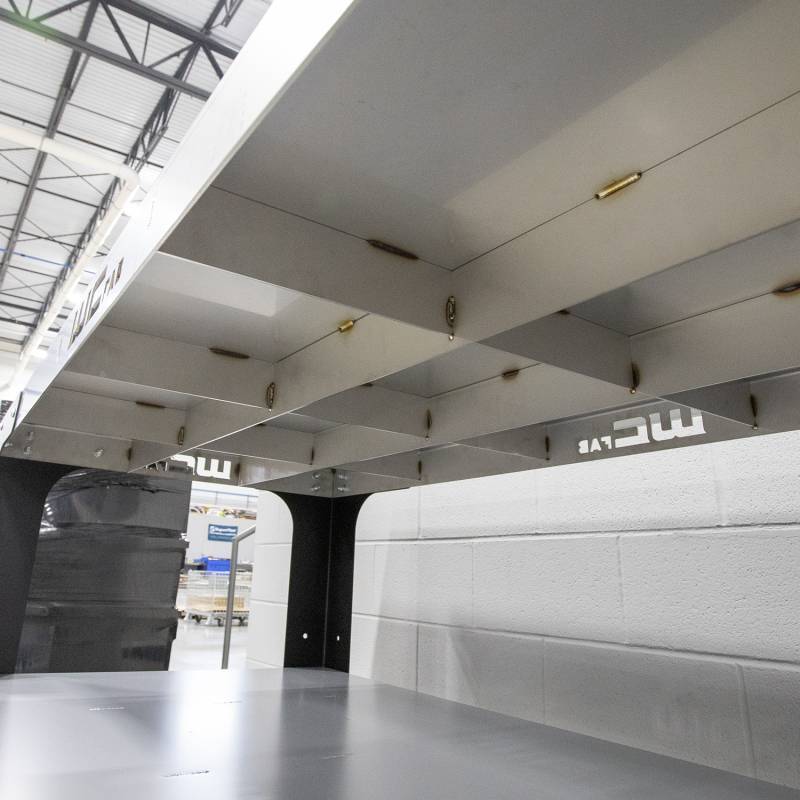 Each bench includes a high strength, full size storage shelf with adjustable height mounting with 3 levels of coarse adjustment in 5 inch increments on the legs that can be fine-tuned by an additional 1.25 inches using the adjustment points on the shelf.