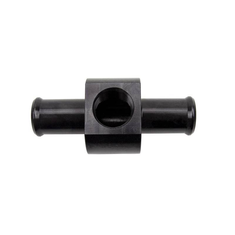Universal Billet Aluminum Adapter Fitting, Straight Hose Barb to Hose Barb 3/4" (0.75 in.) with 1/2" NPT Port. Black Anodized Finish.