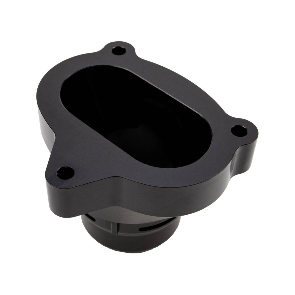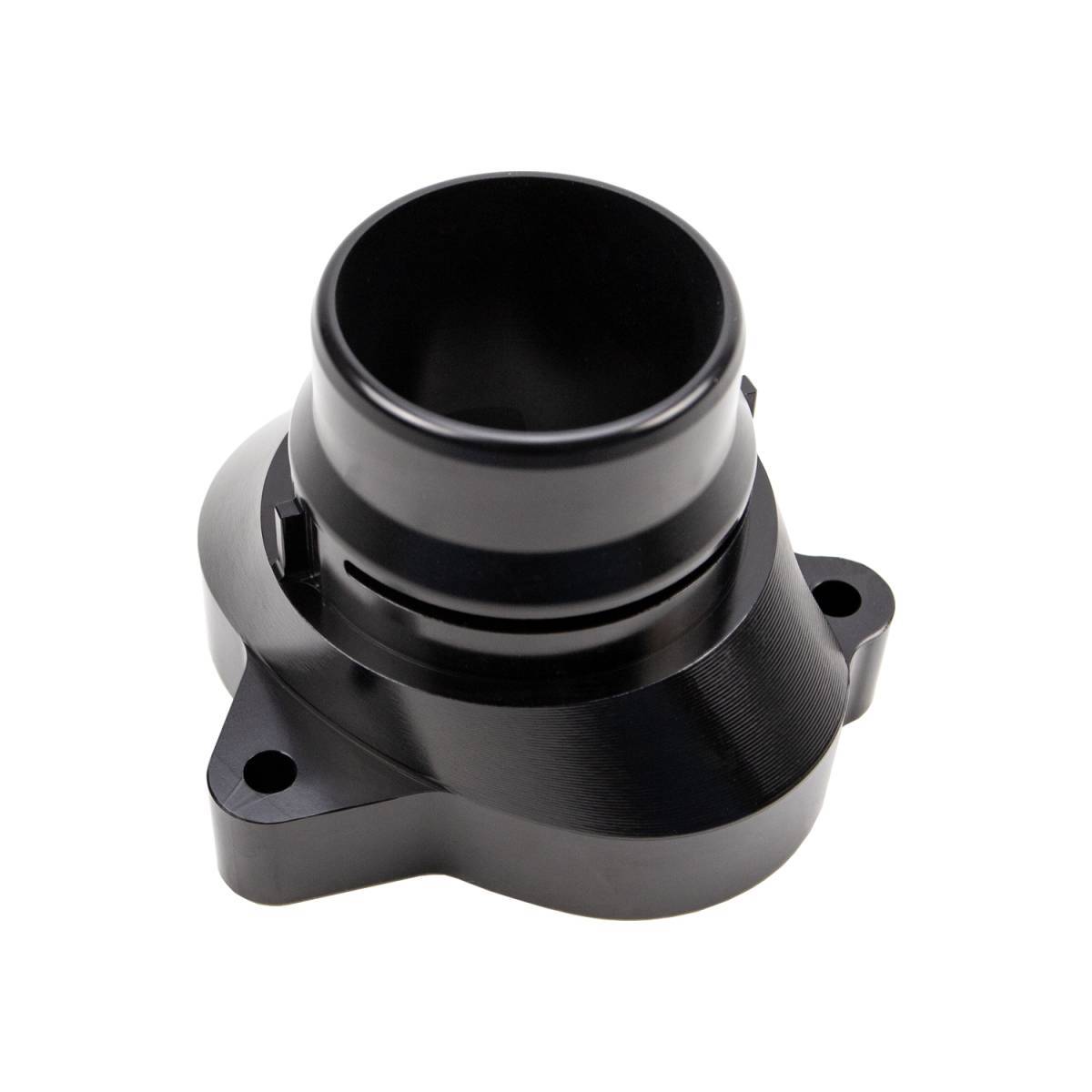 This Billet Aluminum Thermostat Housing for the 2011-2024 6.7L Ford Power Stroke diesel engine used in the F250-F750 Super Duty trucks is a direct replacement upgrade for the failure prone plastic OEM part. Precision CNC machined in our facility in DeKalb, IL USA from 6061 T6 Billet Aluminum. Black Anodized finish complements other upgrades on your truck like our Intake Kit, Intercooler Piping, Upper Coolant Pipe, and Coolant Tanks.
