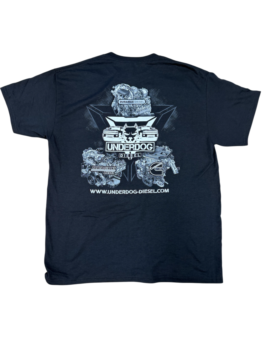 Features our UnderDog Diesel Delta Logo on the left chest, with our new Diesel Trio Design on the back.