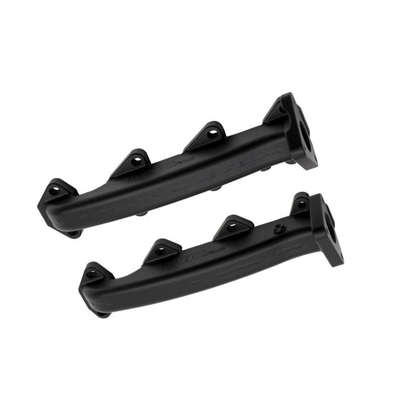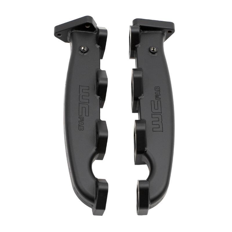WCFab’s Billet Exhaust Manifolds replace the restrictive factory cast parts with high-strength, TIG-welded high-flow billet steel components designed to enhance exhaust flow characteristics, improving turbo spool up, lowering EGTs and increasing power and economy. These manifolds are exhaust port gasket matched and internally divided for optimal flow with OEM or ported cylinder heads. Includes new gaskets, ARP 12PT fasteners, and assembly lube for easy install (up pipe fastener kits sold separately). Finished in Black Ceramic Coat rated for 1800ºF.