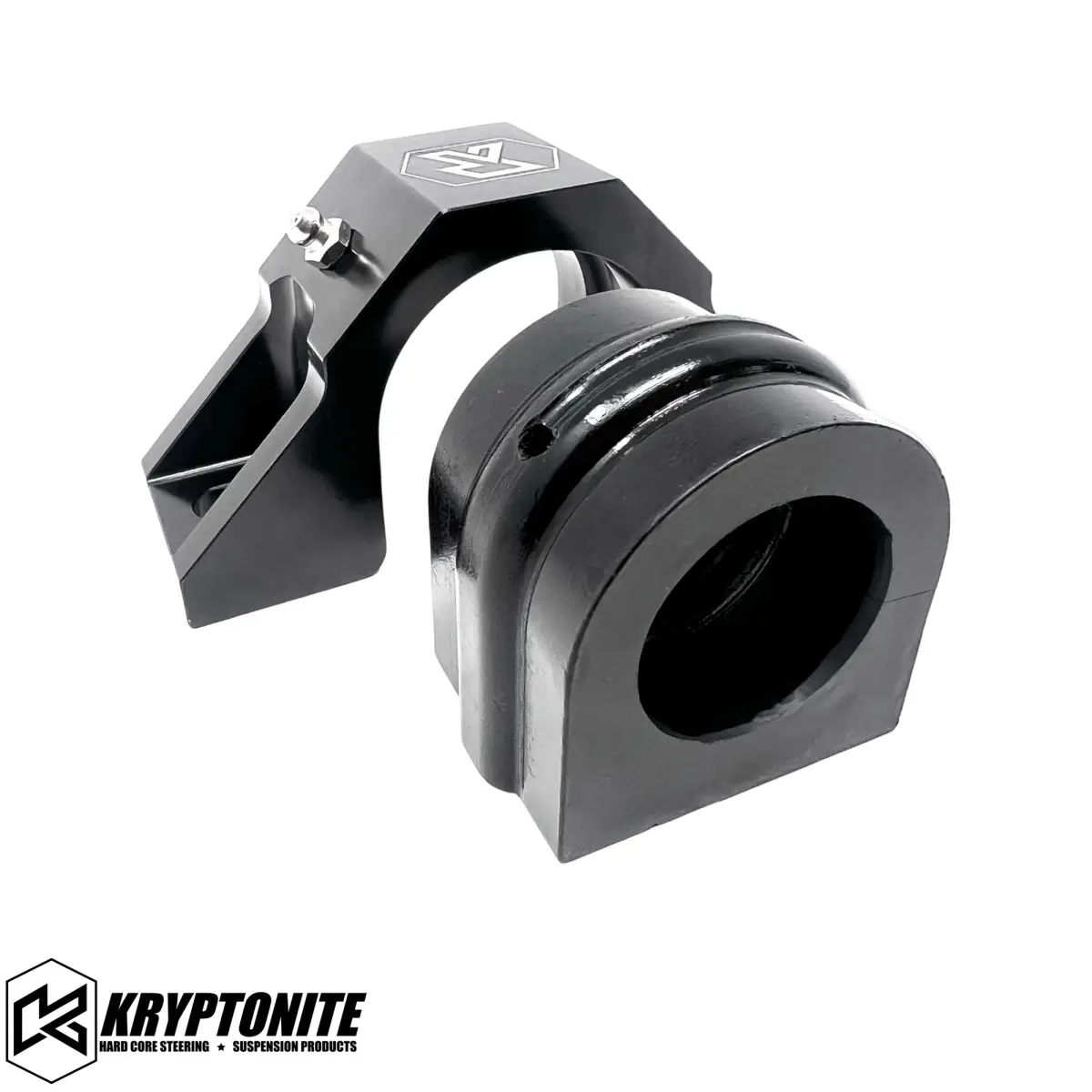 The Kryptonite Billet Sway Bar Bracket Kit is machined from a solid block of 6061 aluminum, and features a built in grease port with grease channels molded into the poly bushing. A stronger mounting surface ensures a firm grip on the sway bar. This bracket kit includes everything you need for install. Sold as pair. If you demand the absolute best for your truck this is it!