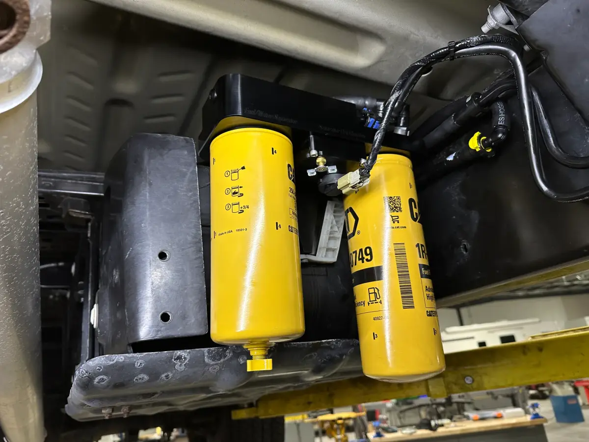 The SPE team designed the setup around some of the best filters on the market all while keeping them in the location of the factory lower fuel filter (DFCM). SPE utilizes CAT 256-8753 for the water and fuel separator filter. This filter has the same 10-micron rating as the factory filter but out-flows the factory unit by over 150 gallons per hour while still being efficient.